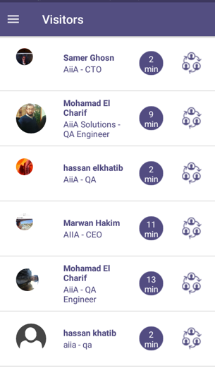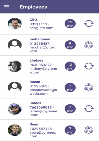 View the exhibitor team members present at the company's booth and sync their contact Details/pictures directly to the phone book.